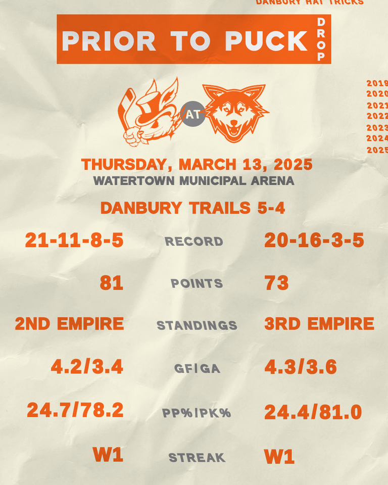 Game Preview: Hat Tricks at Watertown Wolves | March 13, 2025