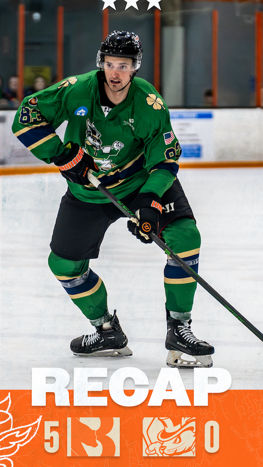 Surrendering 4 goals on 21 shots, Penton found himself on the bench to begin the third period, replaced by Ayden Pierce making his professional debut. Pierce, who began the season with Misericordia in the NCAA, stopped the first 13 shots he faced to the cheers of a near capacity crowd at the Danbury Ice Arena. However, Binghamton added an exclamation mark on their 41st victory of the year with another power play goal at the 15:30 mark of the third period and securing their 11th victory in 12 games against Danbury this season 5-0.