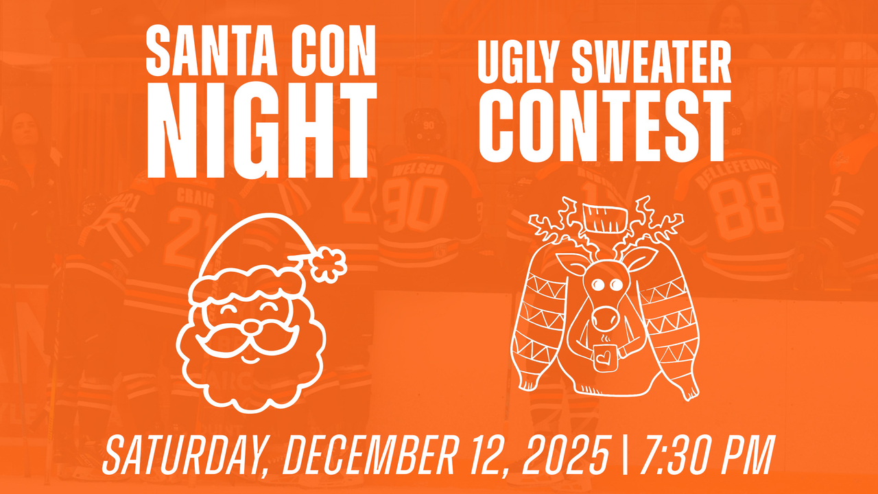 Break out your most outrageous holiday sweater! Register for our Ugly Sweater Contest, and you’ll get a free ticket and a chance to win a prize, decided by an on-ice fan vote during the game. Additional tickets for family and friends are available for just $11.50 each. Register here.
